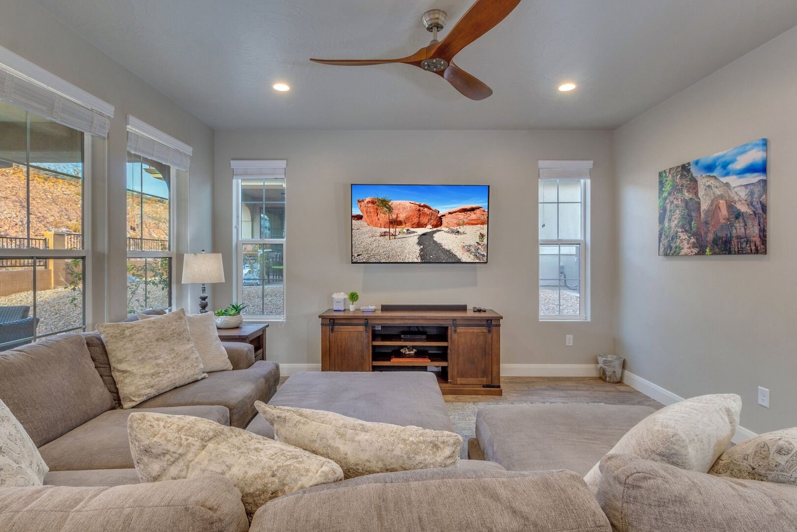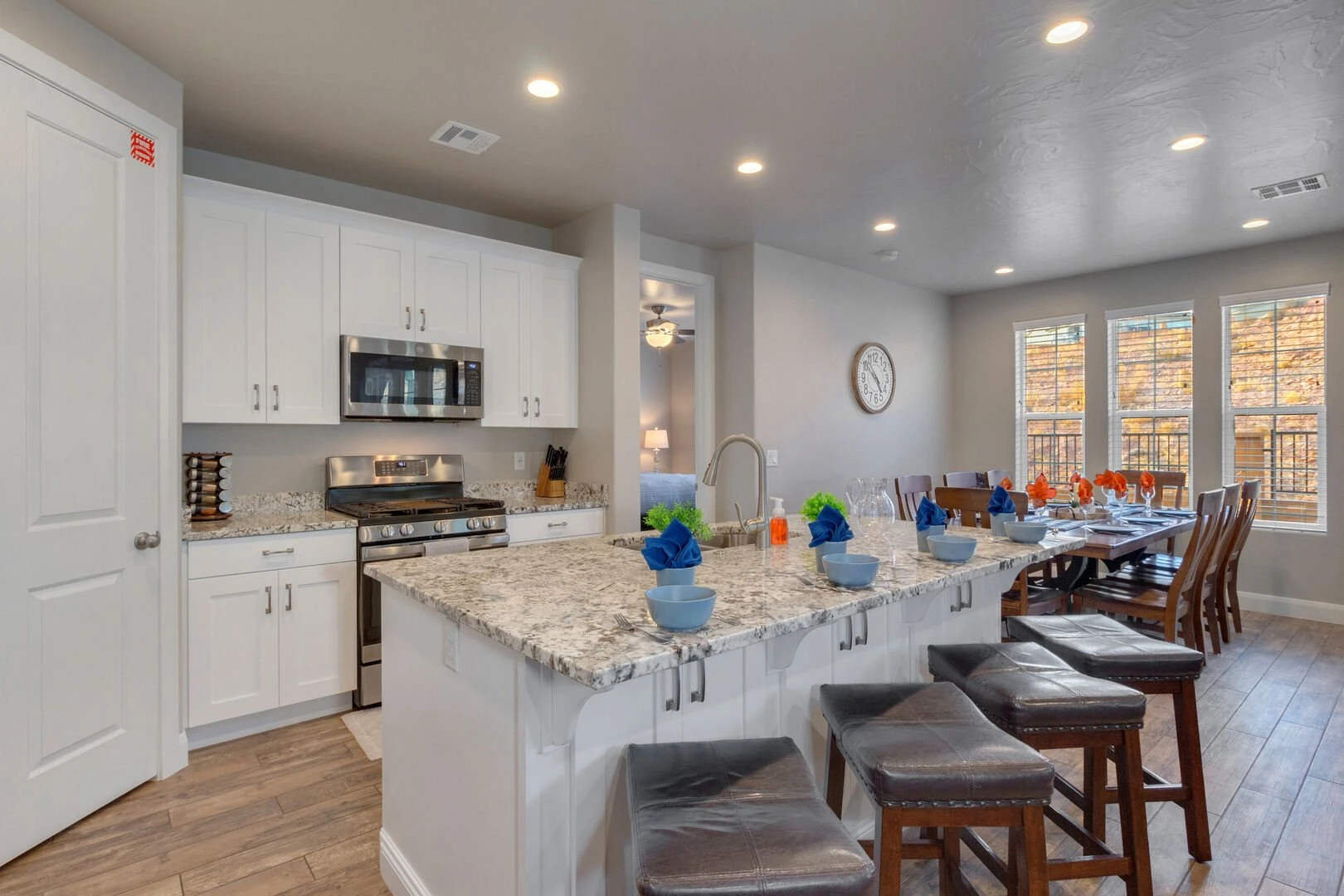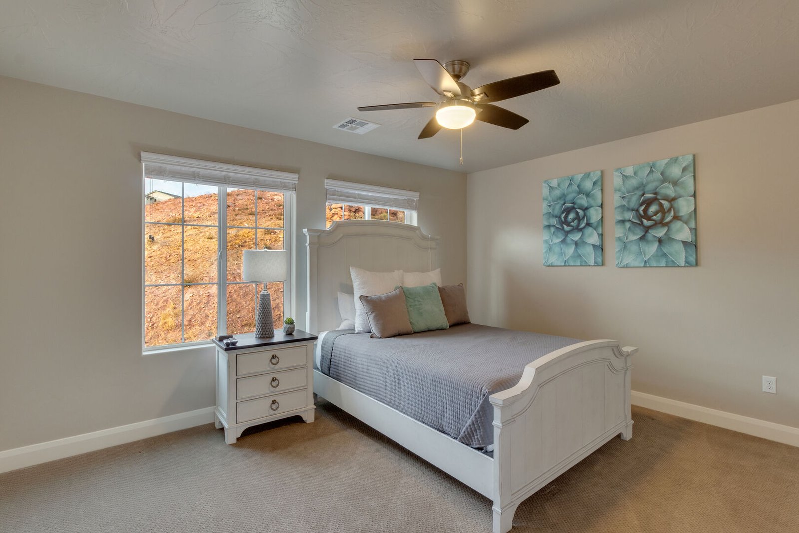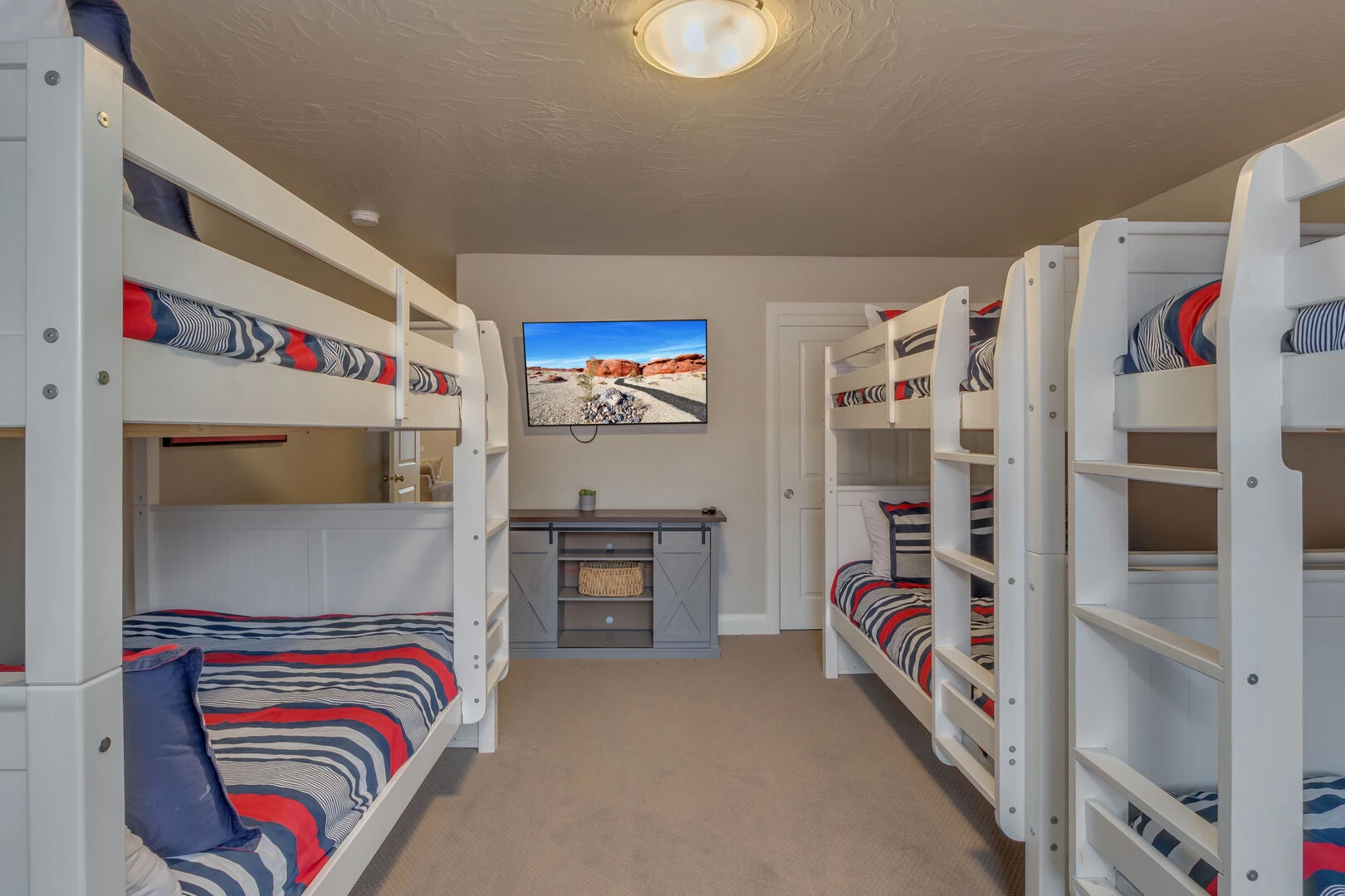 Enjoy a relaxing getaway at Escondido Escape, the perfect desert vacation destination! Spend your days exploring the beauty of Southern Utah with easy freeway access to Sand Hollow State Park and Zion National Park. Come home to your home-away-from-home and enjoy challenging each other to a match on the Ping Pong table or watching the sunset around the outdoor fireplace. Cook some delicious food on the grill or in the beautifully stocked kitchen. With a bunk room and kids’ amenities, this vacation home is sure to be perfect for the whole family!