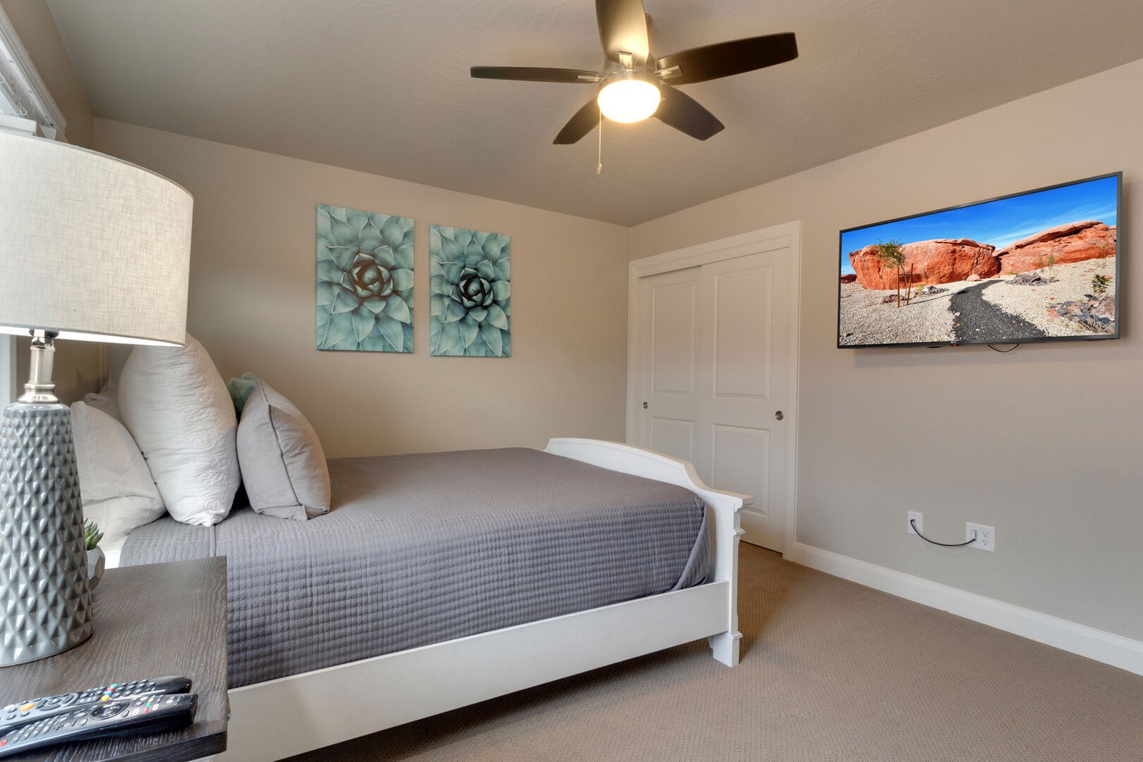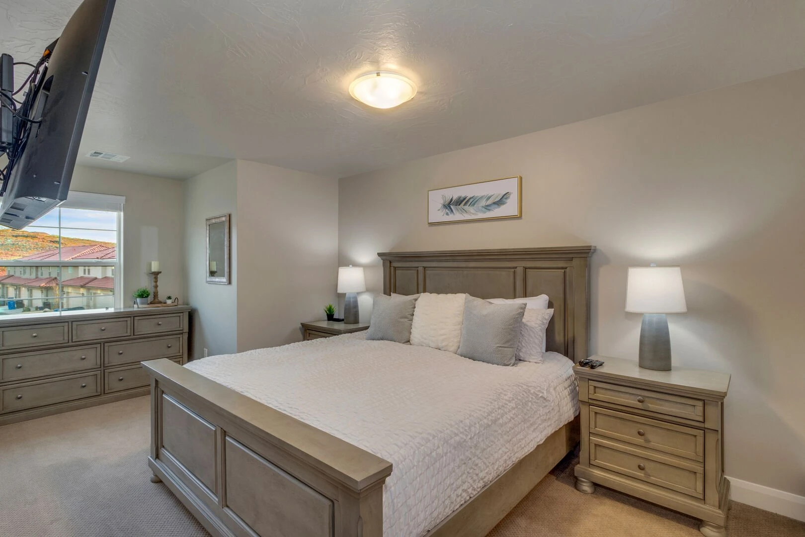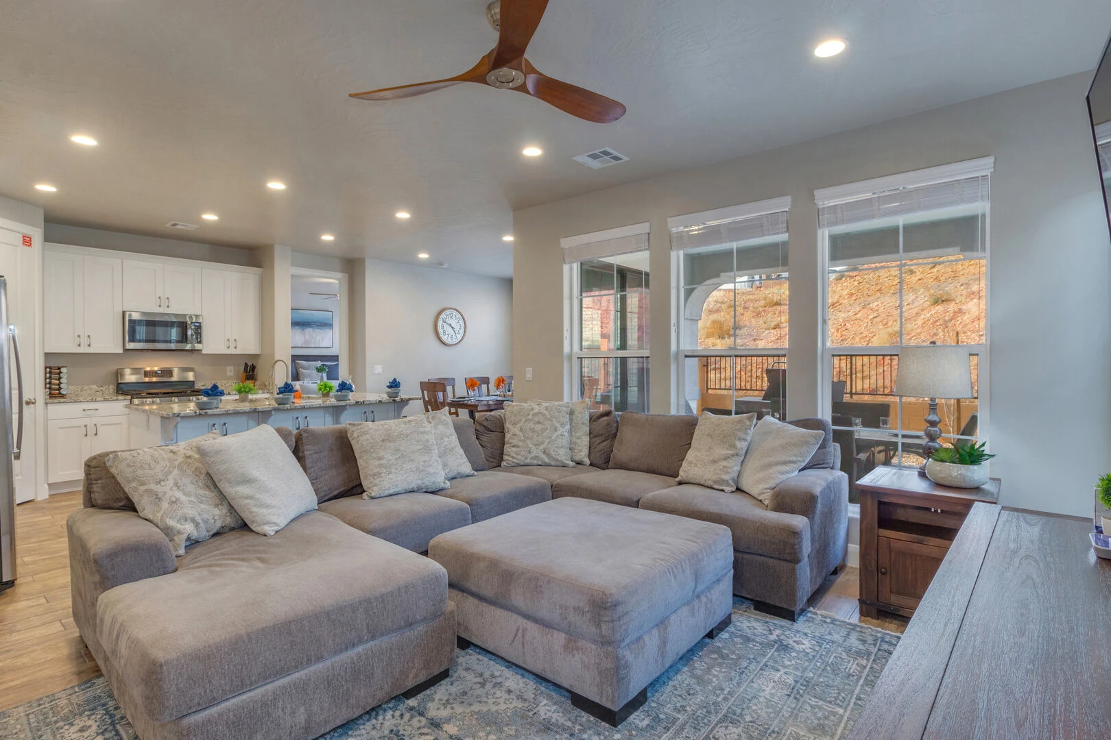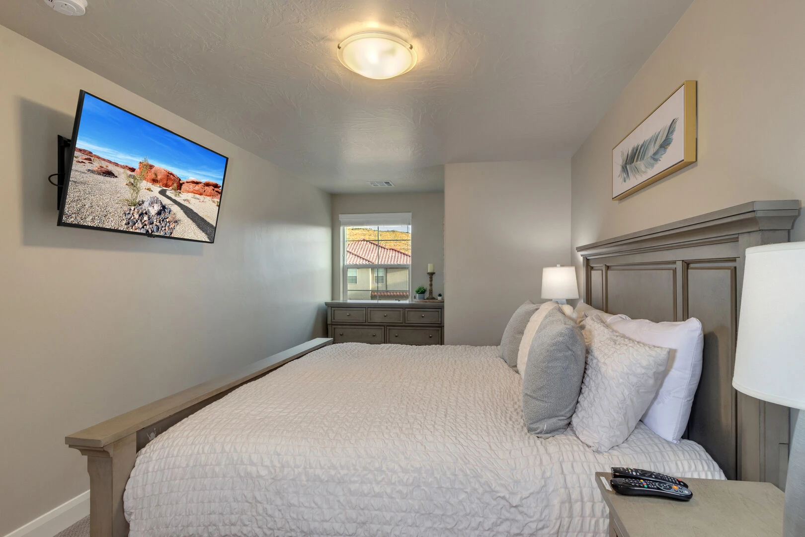 Enjoy a relaxing getaway at Escondido Escape, the perfect desert vacation destination! Spend your days exploring the beauty of Southern Utah with easy freeway access to Sand Hollow State Park and Zion National Park. Come home to your home-away-from-home and enjoy challenging each other to a match on the Ping Pong table or watching the sunset around the outdoor fireplace. Cook some delicious food on the grill or in the beautifully stocked kitchen. With a bunk room and kids’ amenities, this vacation home is sure to be perfect for the whole family!