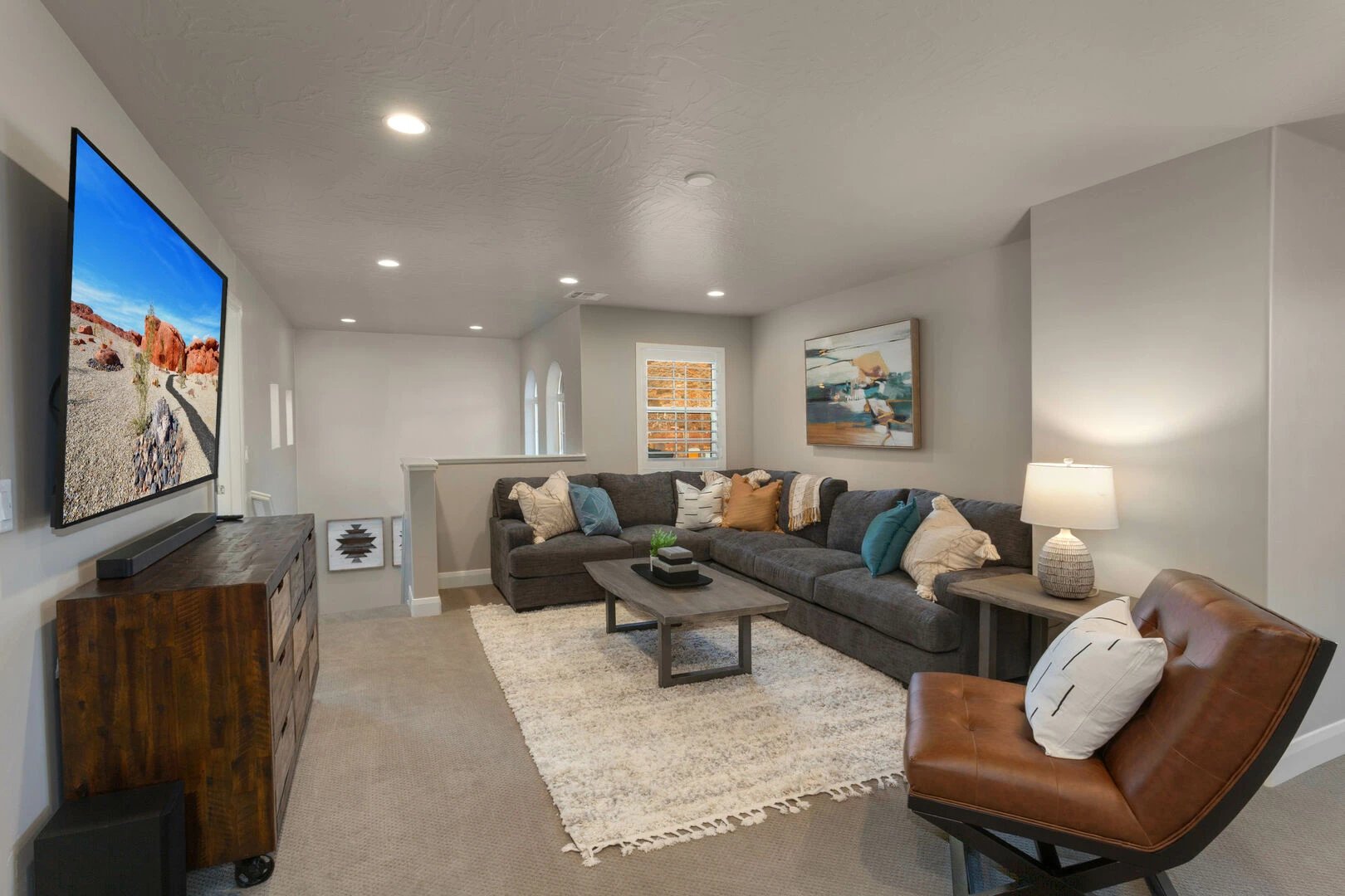 Escondido at Sienna Hills is one of Ivory Homes’ new Townhome Resorts in Southern Utah. It is situated in a beautiful red rock type of valley, just minutes away from I-15. The floor-plan is spacious with bedrooms that are quiet and private. You can rest comfortably in the contemporary style bedrooms, have the time of your life playing video games in the loft equipped with surround sound, or play a game of foosball with the family. Spend your days in the beauty of nature and come home to your own private paradise! Check out the Washington Recreation Center where there is a pool, splash pad, gym, lazy river, rock climbing, slide, and much more! Located nearby are Sand Hollow Reservoir, Zion National Park, and lots of biking/hiking trails and golf courses. There will be endless amounts of fun during your stay at Escondido!
