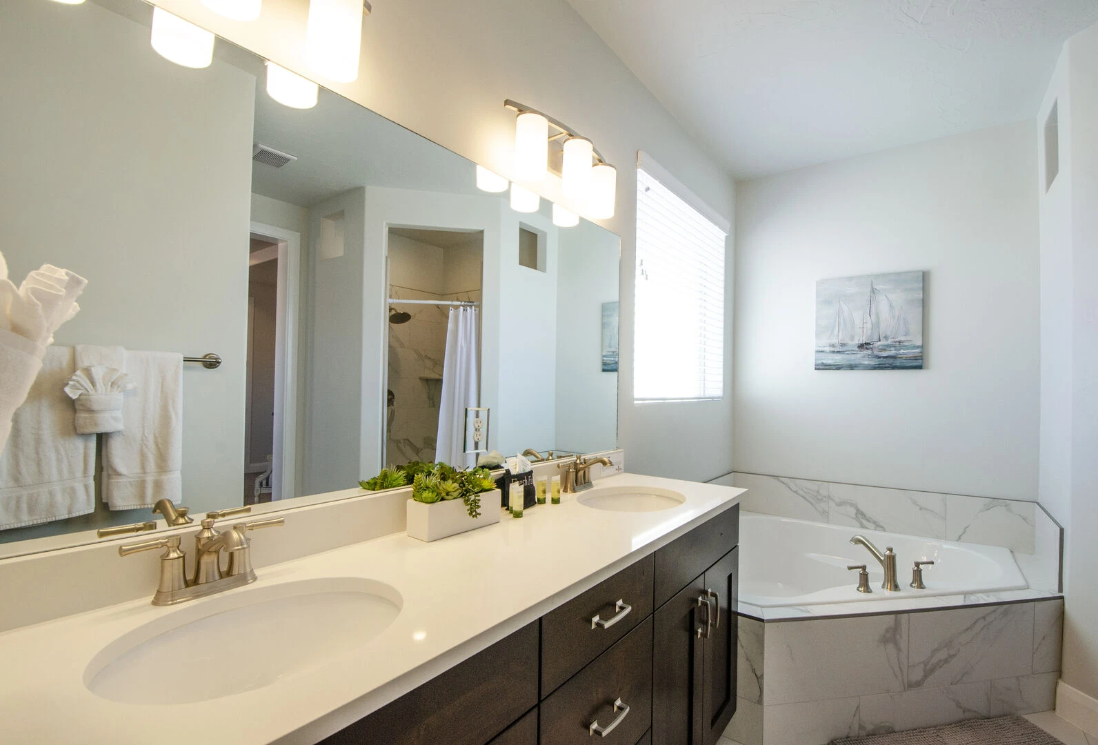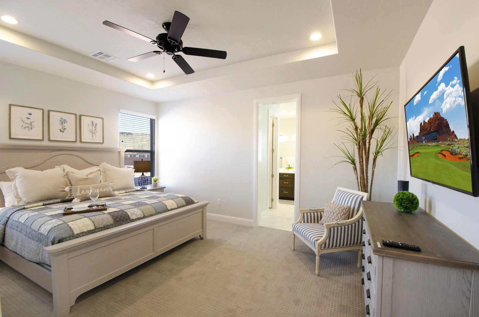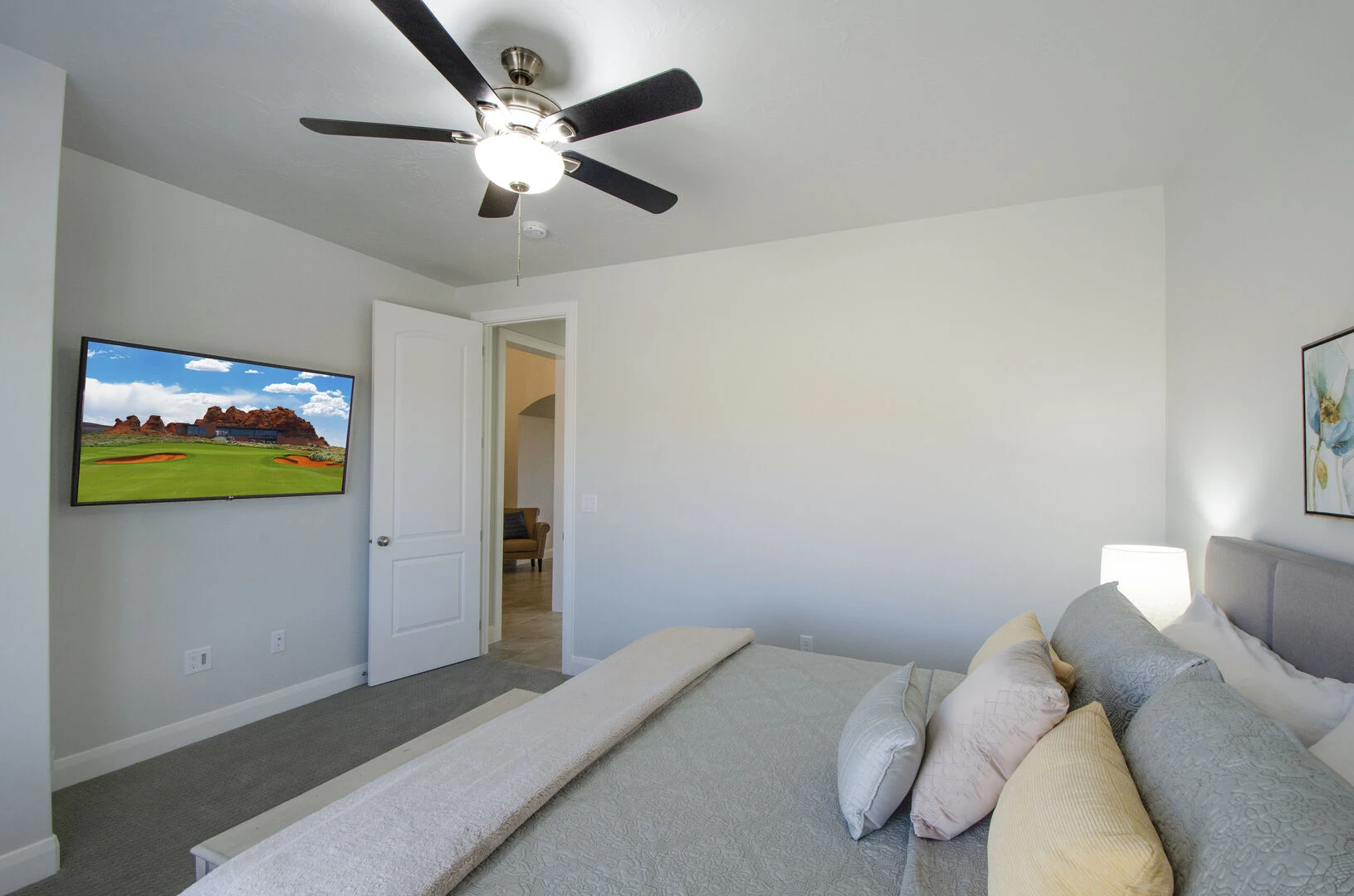 Enjoy a relaxing desert vacation when you stay at Whispering Sands at Paseos, the perfect place to get away from the stresses of everyday life! This elegant home is expertly designed to make you feel at home in the heart of luxury. Spend your days exploring the local scenery as you hike Zion National Park, splash in the waves at Sand Hollow State Park, or enjoy a night at the theater under the stars at Tuacahn Center for the Arts. As the sun sets, return home to your own desert paradise and cook some delicious food on the provided BBQ grill or in the spacious kitchen. Spend an evening under the stars in your private hot tub or lounging on the patio furniture to enjoy the beautiful desert night. Come inside and cozy up on the couch for a movie on the large TV, or challenge each other to matches on your own private Ping Pong Table. No matter what you enjoy, Whispering Sands at Paseos is sure to have something for you!