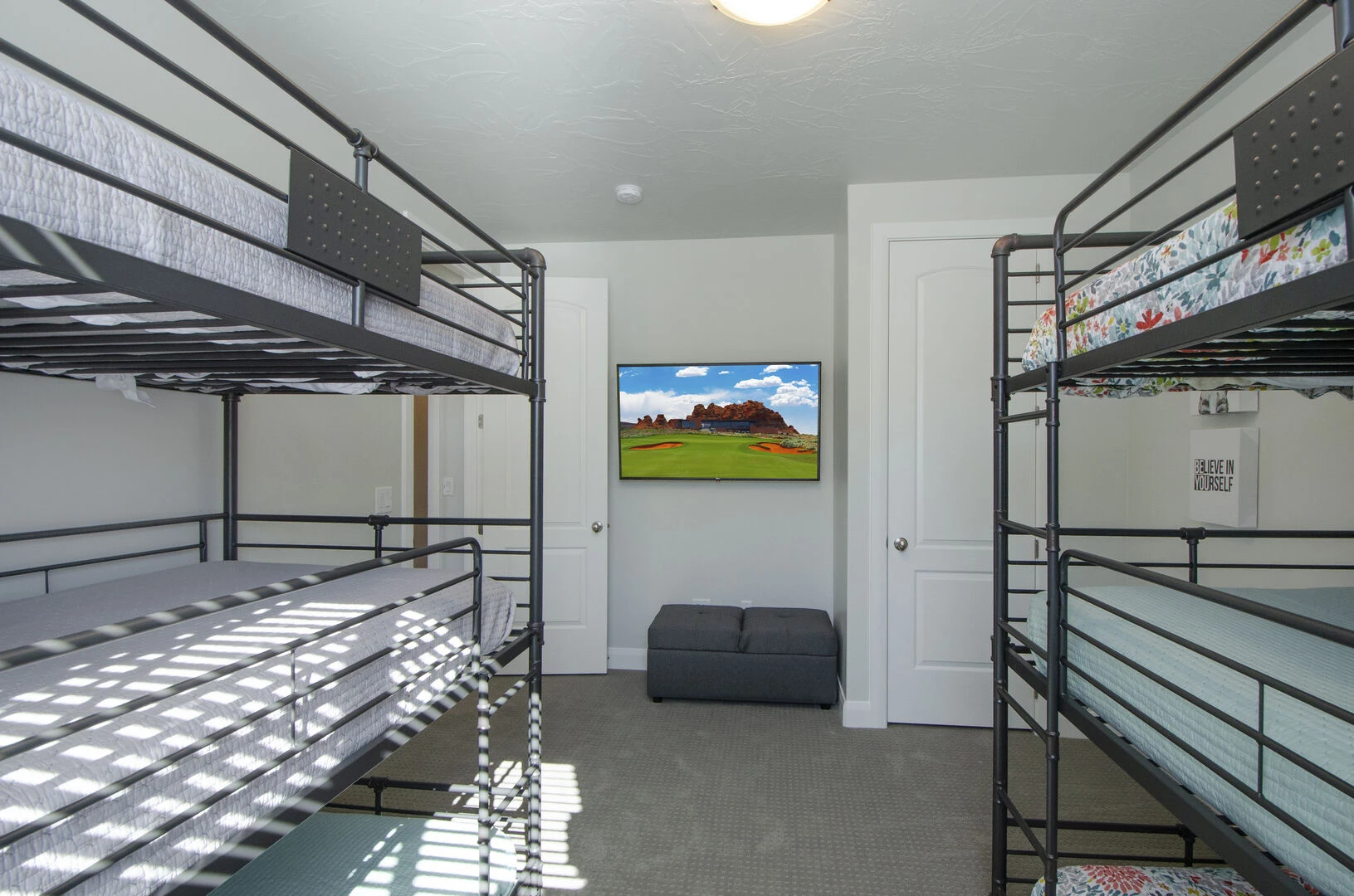 This beautiful 3-Bedroom 2-Bathroom home can comfortably sleep 10 guests, or with the use of two rollaway beds, fit as many as 12 people for the ultimate desert vacation! The first bedroom features a King Bed with a TV, as well as a spacious ensuite bathroom. The next bedroom hosts a king bed and TV and shares a bathroom with the third bedroom. The bunk room holds 2 triple-tier bunks and a TV, perfect for both kids and adults alike! With countless ways to spend your days, Whispering Sands at Paseos is sure to be a favorite vacation destination for years to come!