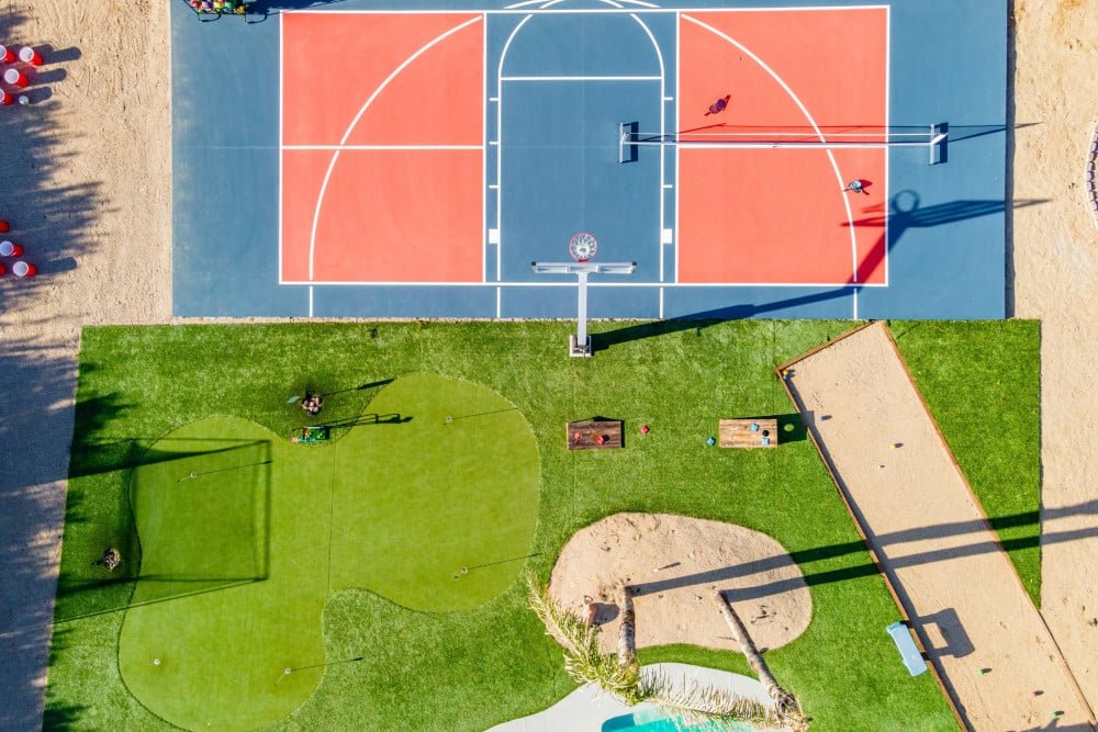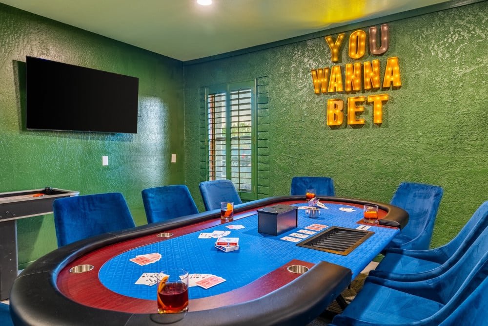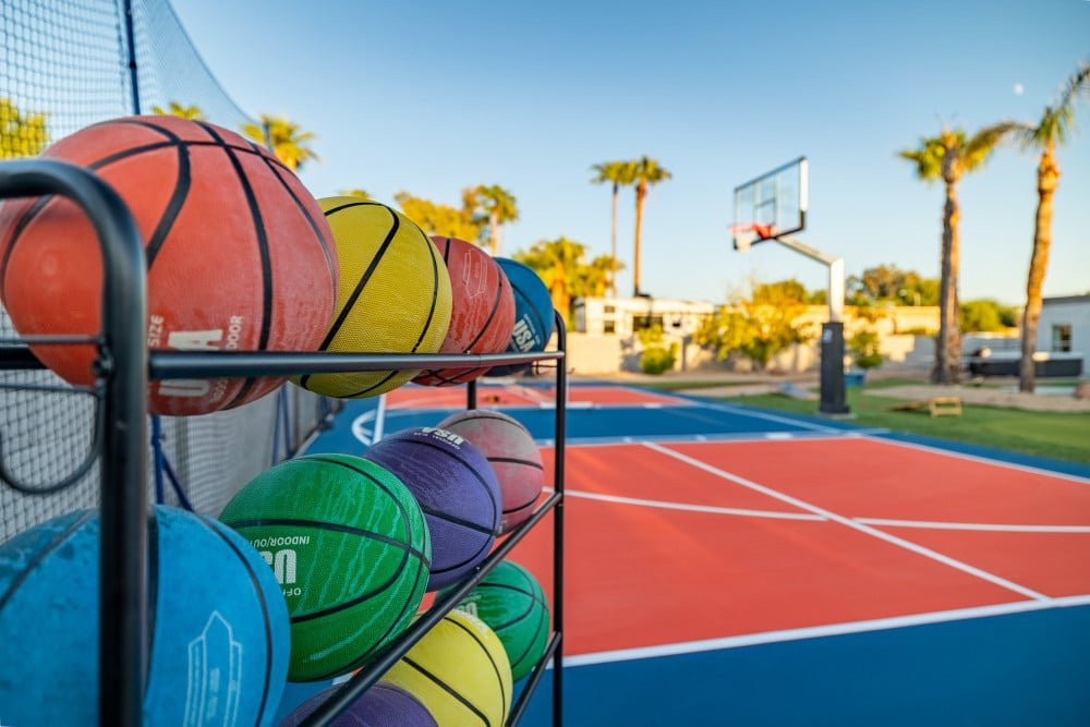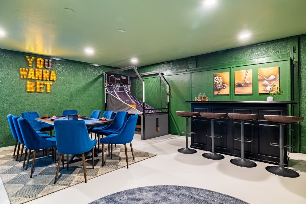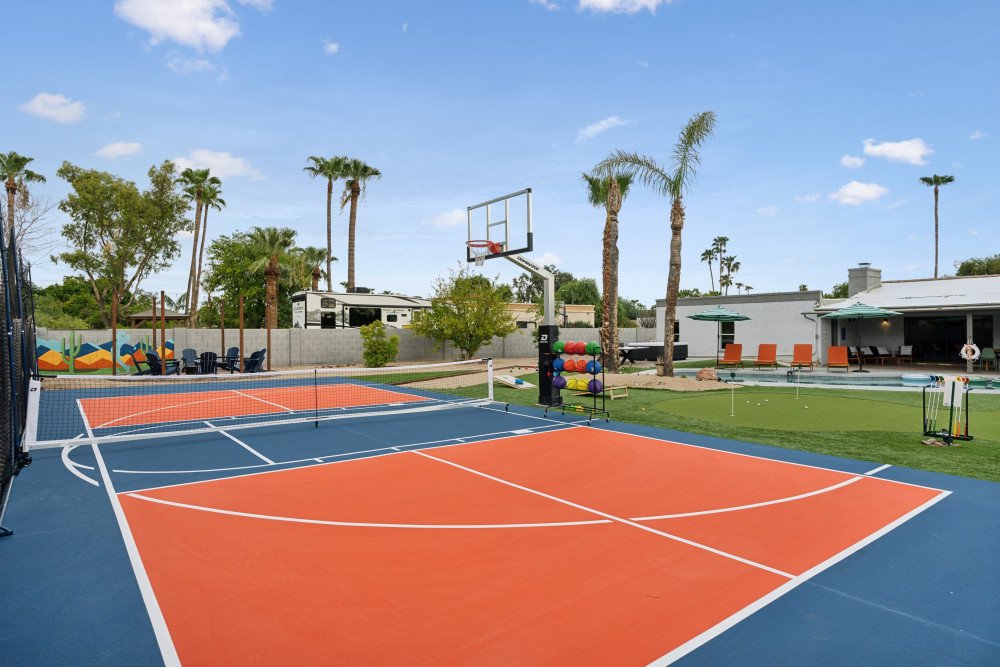The fun truly begins in your private playground, featuring a speakeasy-style game room complete with a poker table, shuffleboard, and arcade games. Outdoors, the possibilities are endless with a stunning private pool, hot tub, and a plethora of games including bocce ball, cornhole, and a full-on sports court with options for basketball, pickleball, and a putting green for golf fans. You can also refine your golf skills at the practice cage before teeing off at nearby famed courses. The terrace is perfect for alfresco dining, while the fire pit provides cozy evenings under the star-studded Arizona sky. This pet-friendly escape even has a PlayStation for gamers and a welcoming environment for furry family members. Minutes away from attractions like Kierland Commons and local gems, this Scottsdale retreat promises a blend of adventure and tranquility. With so many enriching experiences waiting inside and out, your stay here will be filled with laughter, luxury, and lasting memories.