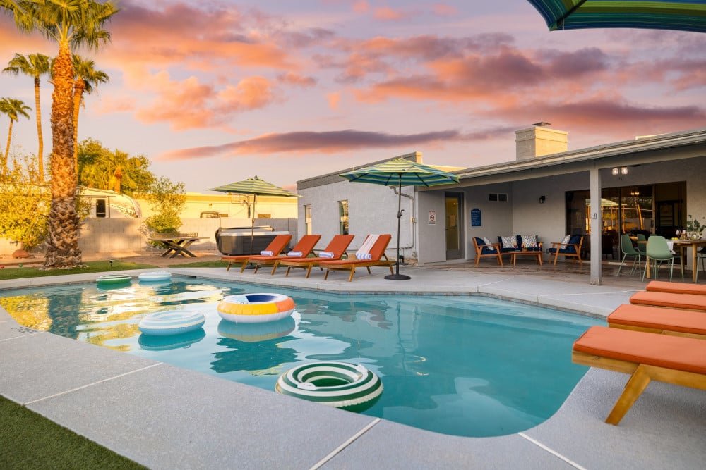 Welcome to Scottsdale’s premier getaway, a luxurious 5-bedroom paradise perfect for families and groups seeking both relaxation and entertainment. Nestled in the heart of Scottsdale, AZ, this spacious home accommodates up to 17 guests and offers everything you need for an unforgettable stay. The elegantly furnished bedrooms, featuring a mix of king, queen, and twin beds, ensure comfort and privacy for everyone. With modern amenities like high-speed wifi, air conditioning, and a fully equipped kitchen, you’ll feel right at home. The living area invites you to unwind on its ample seating, and for a touch of luxury, enjoy the soothing massage chairs after a day of adventures.