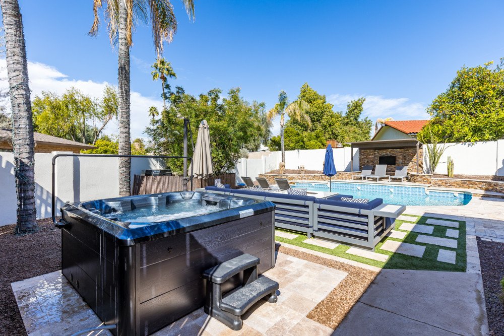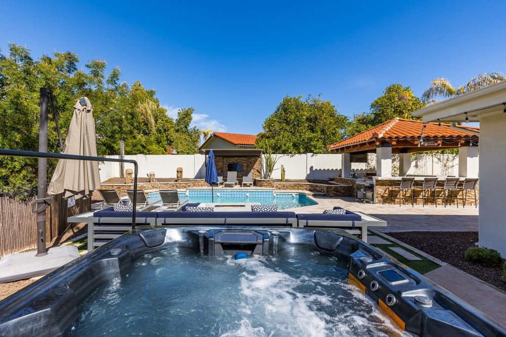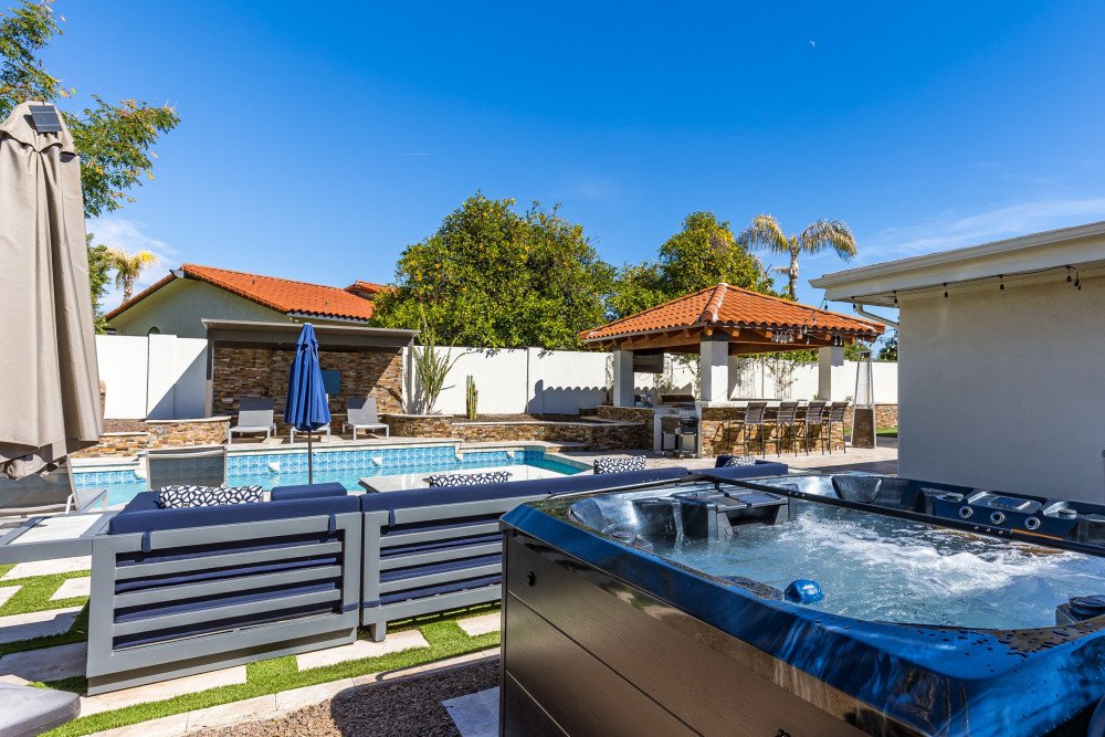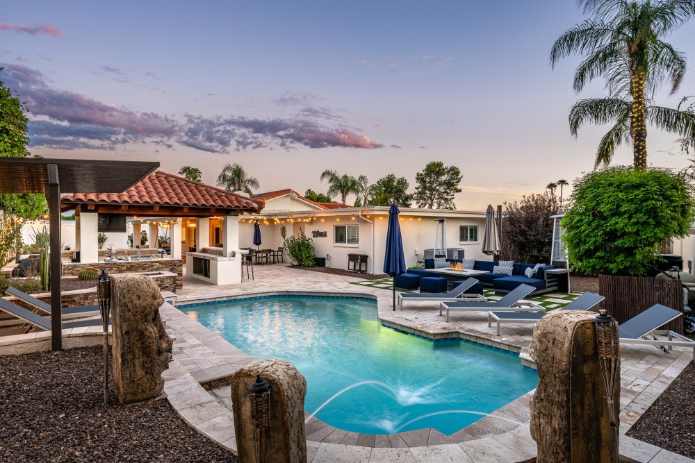 This gorgeous 5 bedroom, 3 bathroom home can sleep up to 15 guests. Inside you will find an open-plan living and dining area, fully equipped kitchen, home gym and comfortable bedrooms. Outdoor highlights feature a private pool, sun loungers, outdoor kitchen, putting green, fire pit and alfresco dining.