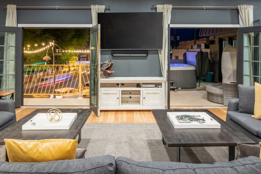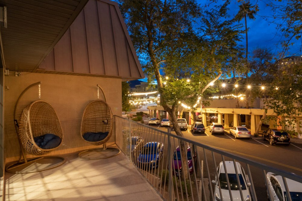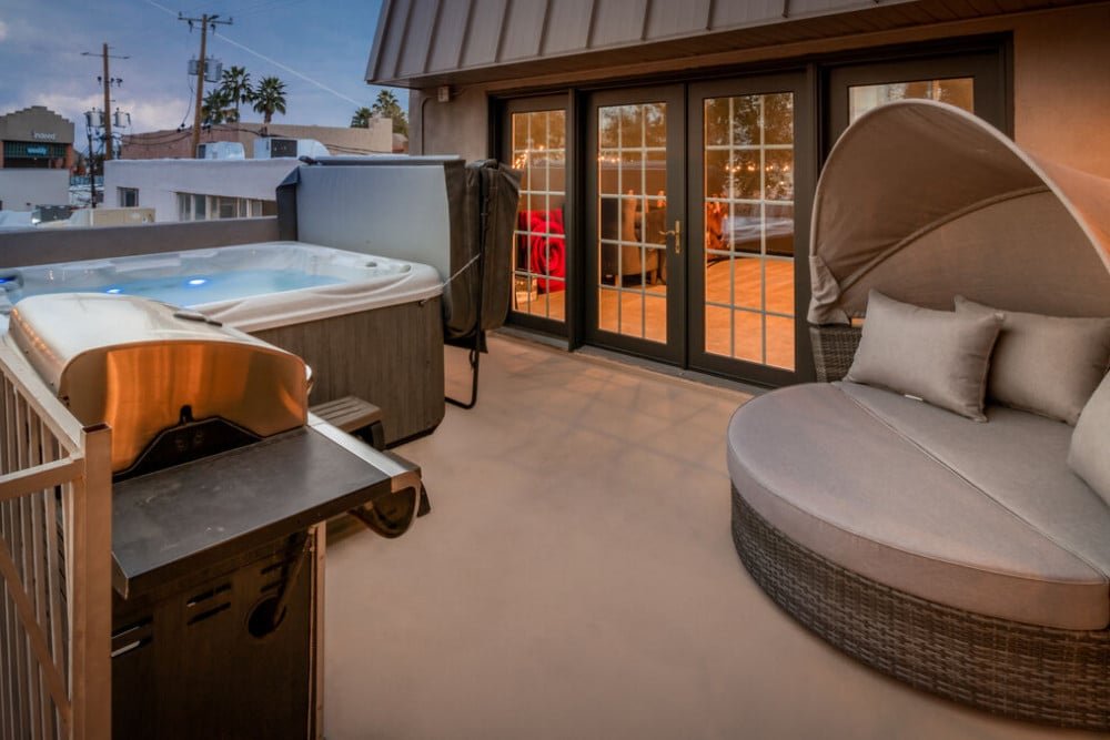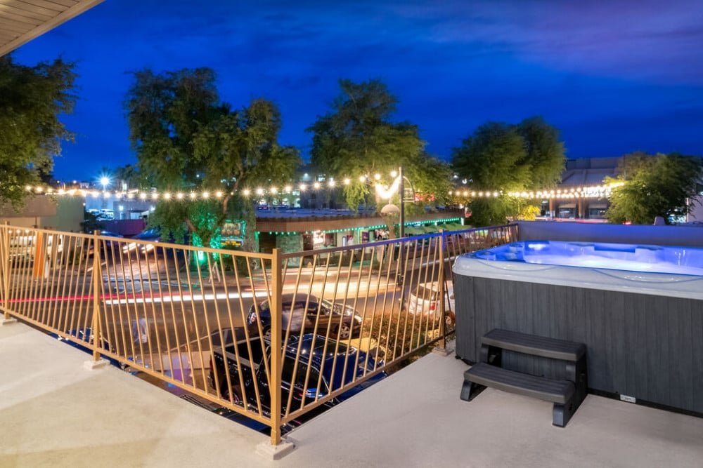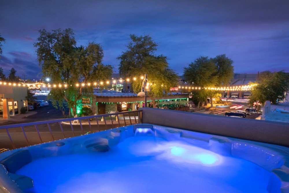 Dripping with innovative design and surrounded by the energy of bustling Scottsdale below, this 6 bathroom, 2 bathroom penthouse is the perfect place for your group of 18. The wrap-around balcony offers a birds-eye view of the fabulous shops, share-worthy galleries, and world-renown restaurants and bars that Scottsdale is cherished for.